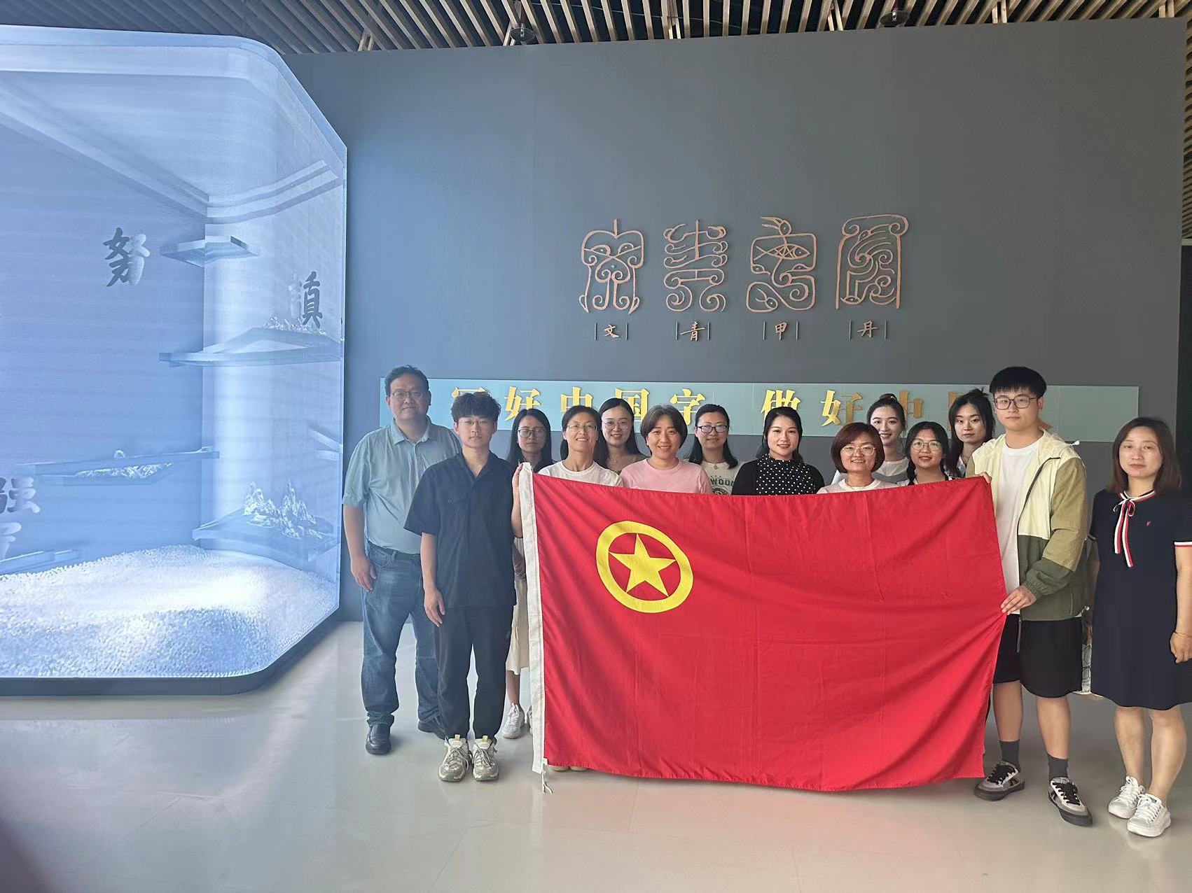 于2023年5月31日前往奉贤博物馆参观“丹甲青文——中国汉字文物精华展”,开展情景式党课学习活动,提高课程思政(家国情怀)水平,培育学生的文化自信和民族自豪感,进一步承袭汉字精髓,增强文化自信、爱国情怀与民族自豪感。